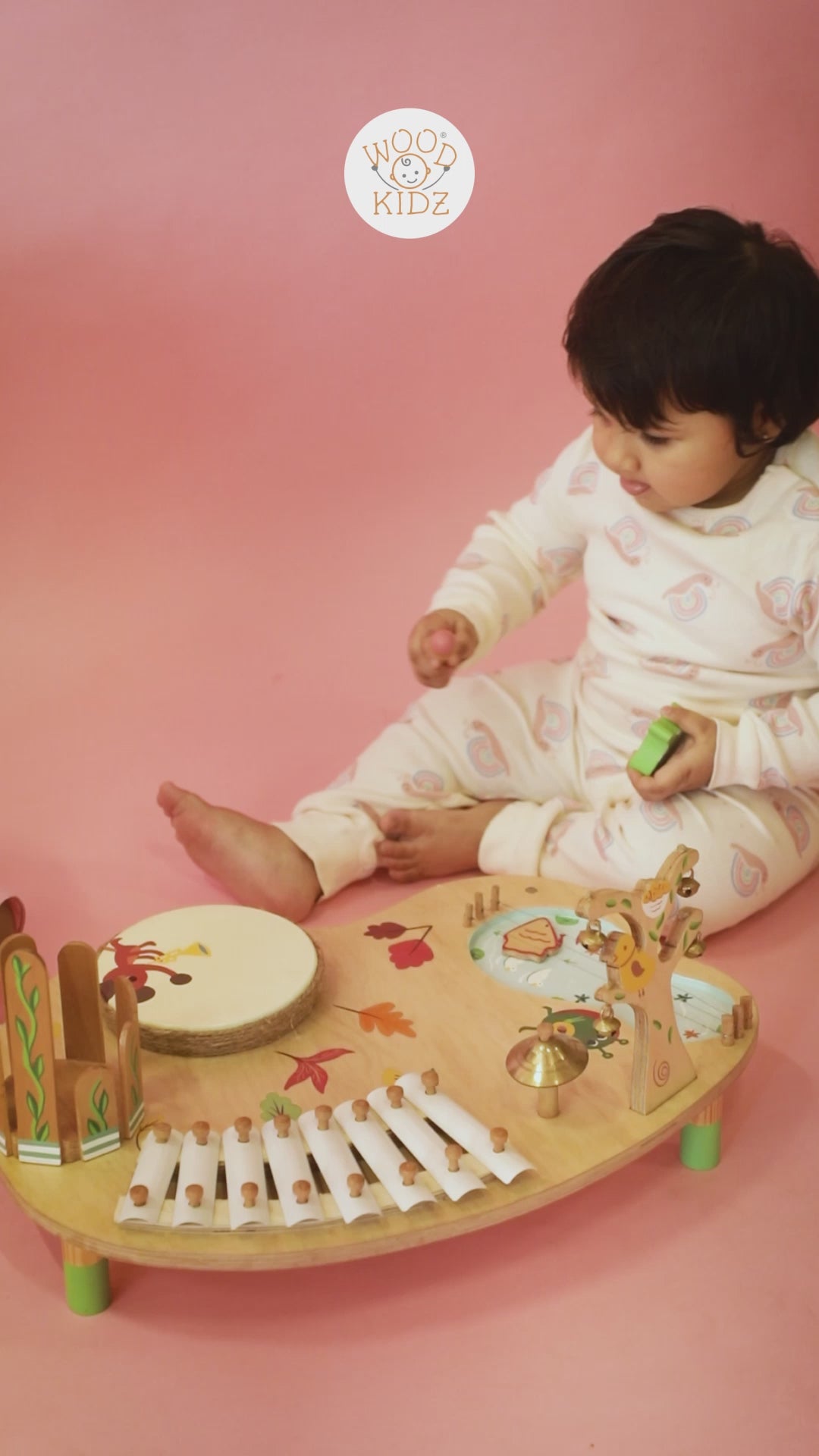 Let your child step into a magical world of sound with the Wood-O-Kidz Woodland Symphony Music Table—a beautifully handcrafted musical playset inspired by nature. With mushroom bells, wooden chimes, and playful drums, this interactive table encourages sensory exploration, creative expression, and a deep love for music.